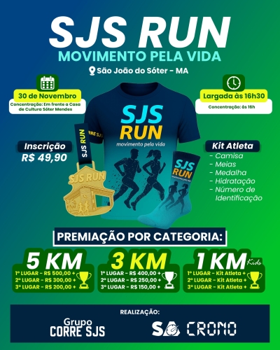 A primeira corrida de rua SJS RUN - movimento pela vida, surgiu a partir da vontade de um grupo de corredores e apoiadores de São João do Sóter, o grupo CORRE SJS, por entender que a corrida não é só um exercício, mas uma terapia que fortalece a mente e o corpo.